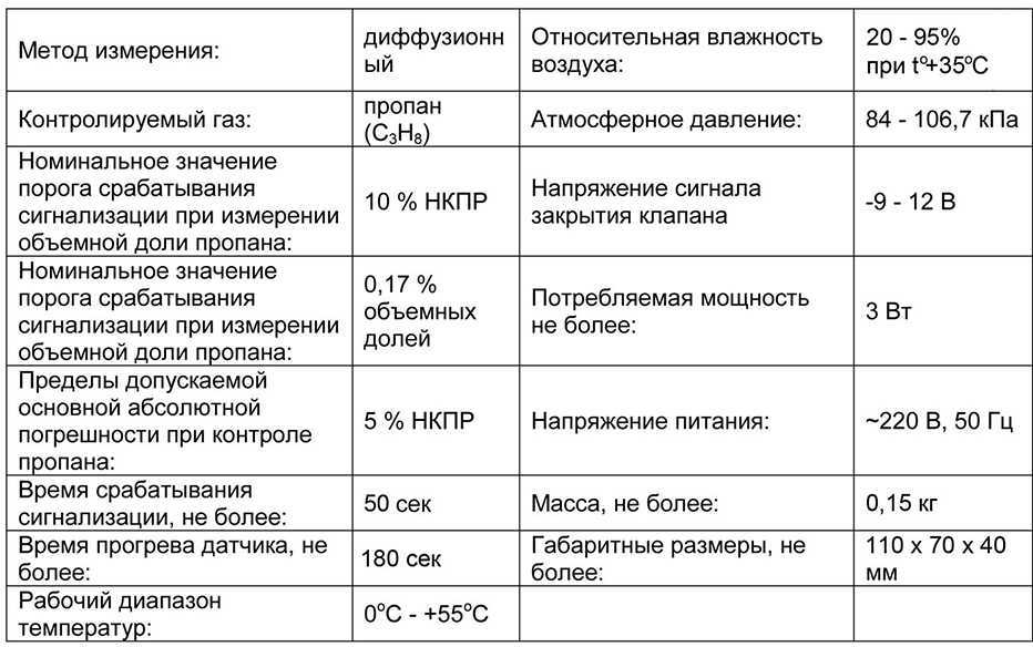 Прибор представляет собой электронный блок, монтируемый в корпус. Состоит из основной платы, на которой размещены: блок питания, полупроводниковый сенсор, чувствительный к пропану, микропроцессорное управление и светодиодная индикация.