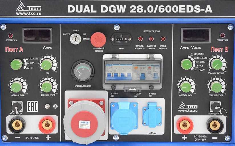 Все приборы для контороля сварочных процессов и работы двигателя на одной панели управления.